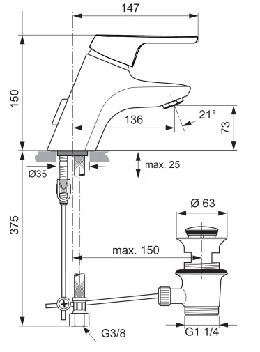 Ideal Standard Mitigeur monocommande pour lavabo, Okyris Blue Clinic (D2455AA)