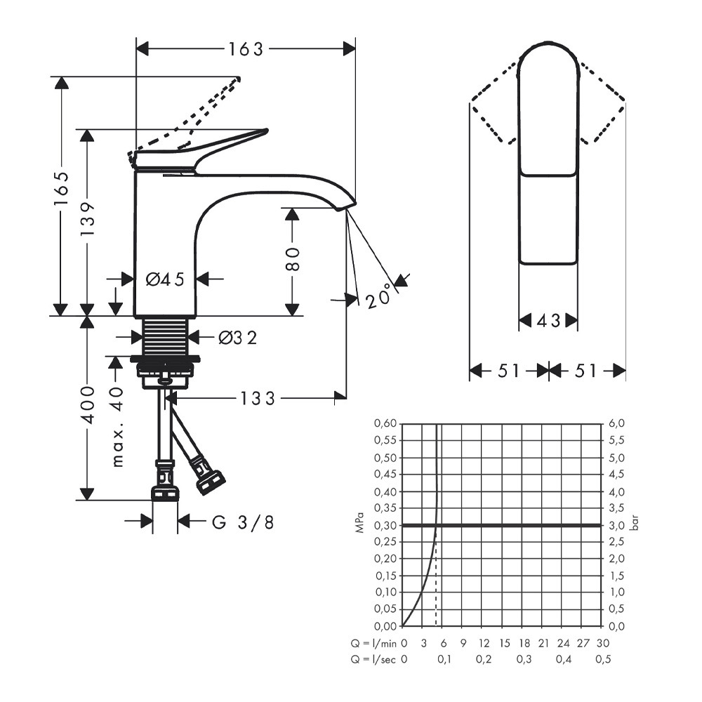 Hansgrohe Vivenis Mitigeur de lavabo 80 sans tirette ni vidage, chromé (75012000)