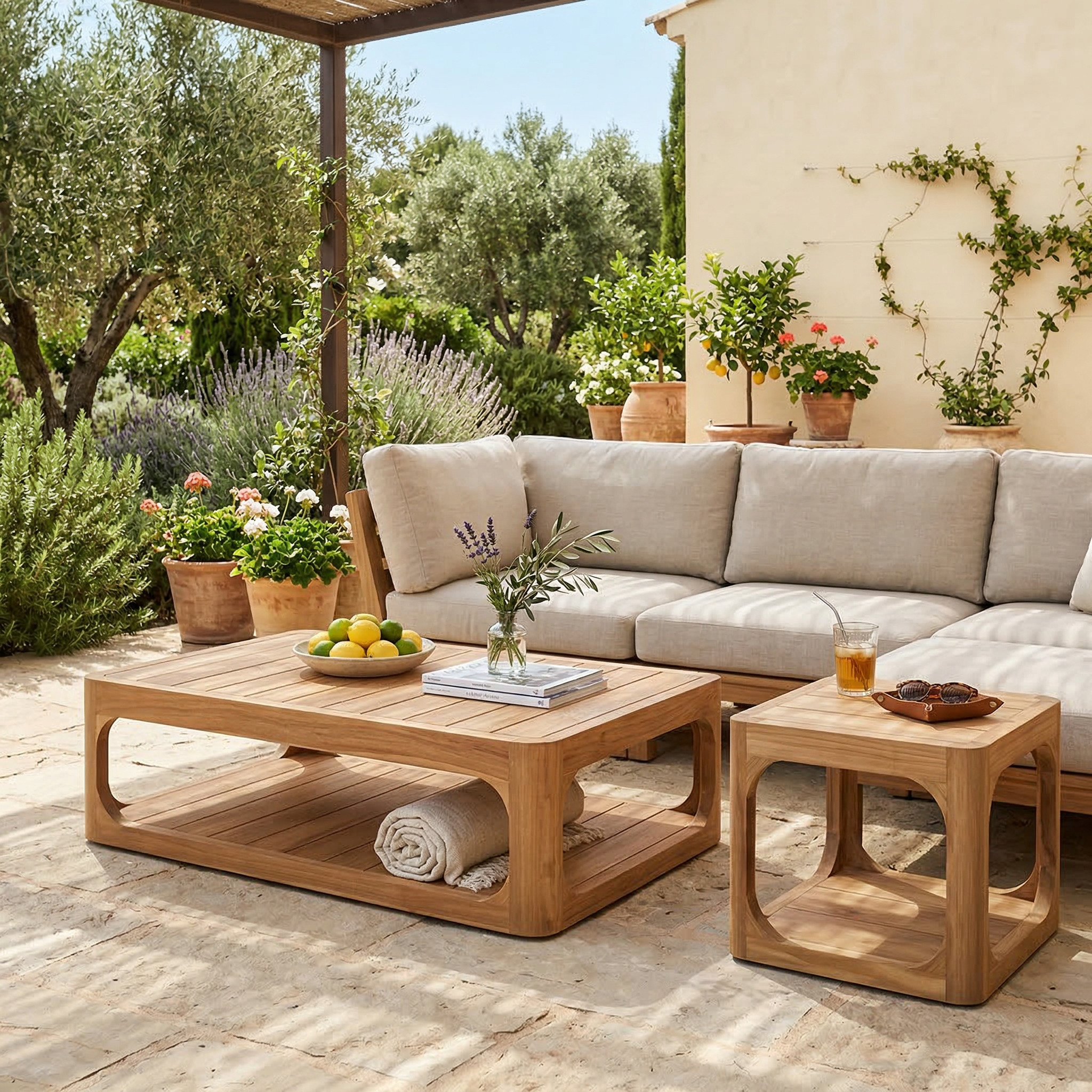 Table d’appoint en teck massif – élégance naturelle pour des moments d’été en extérieur (NATOFTB5050S)