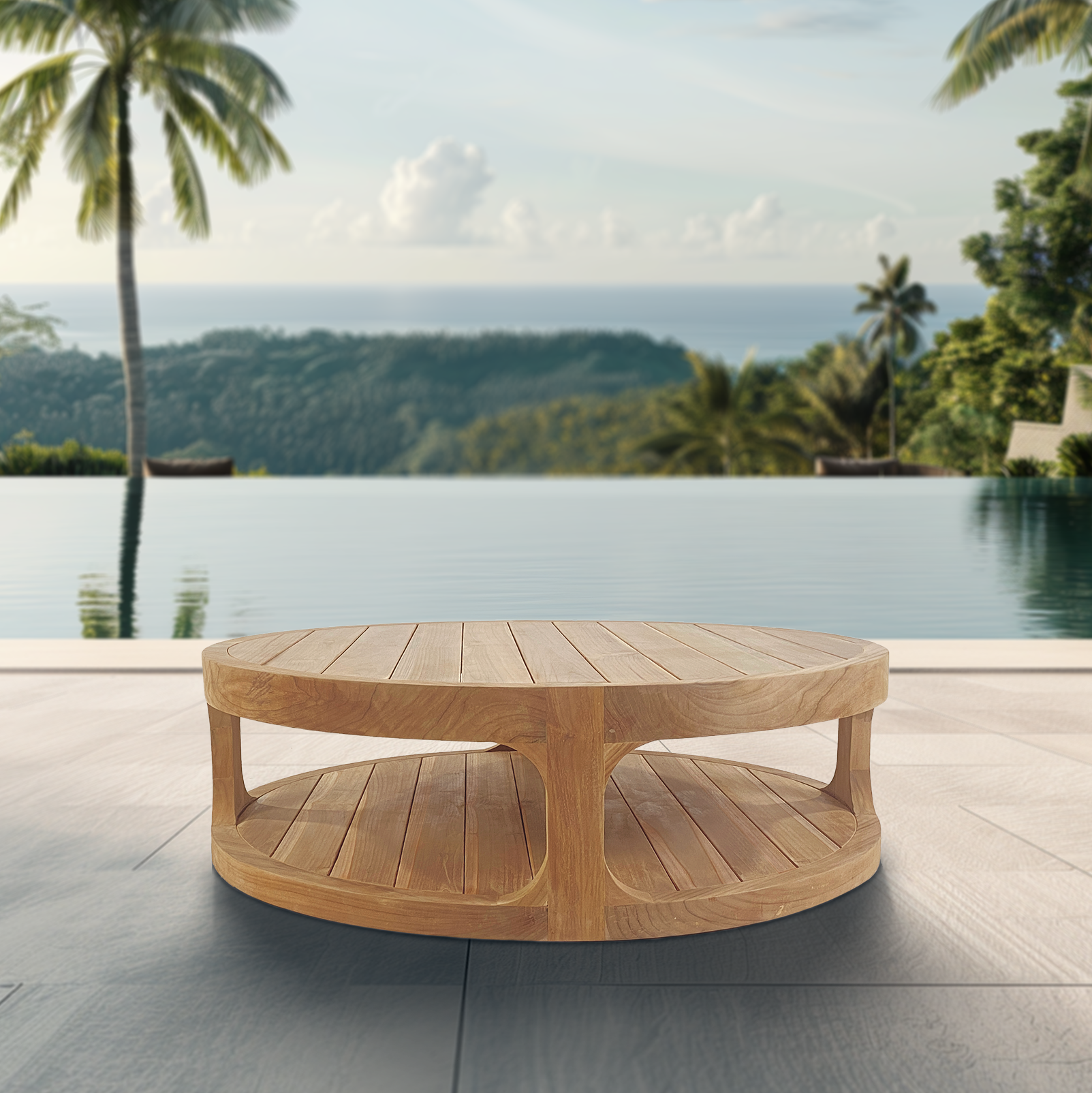 Table basse ronde de jardin en teck massif NATOFTB120120R – Élégance et praticité pour vos espaces extérieurs