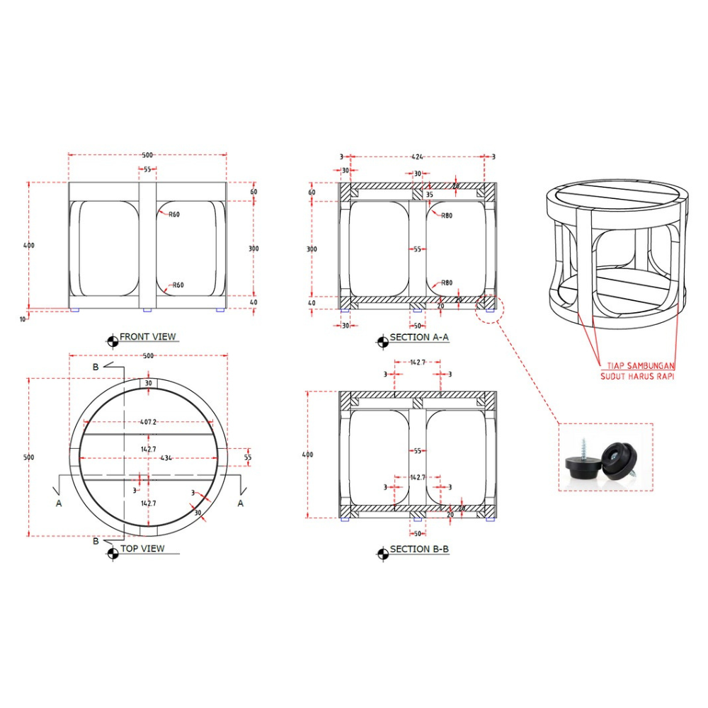 Caractéristiques de la Table d'appoint ronde de jardin en teck massif, 50x50x40 cm, deux plateaux (NATOFTB5050R):