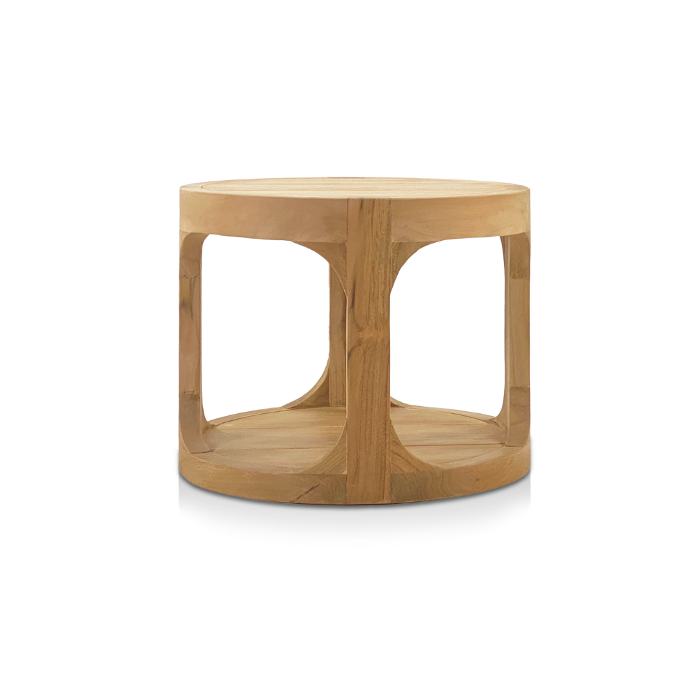 Table d’appoint ronde en teck massif 50x50x40 cm deux plateaux – style chic terrasse piscine (NATOFTB5050R)
