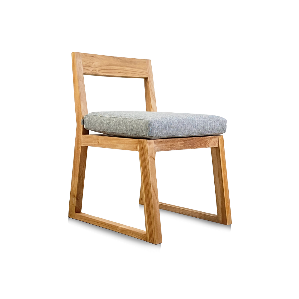 Chaise de jardin en teck massif avec coussin gris – élégance naturelle pour des moments d’été en extérieur (NATOFCH50B)