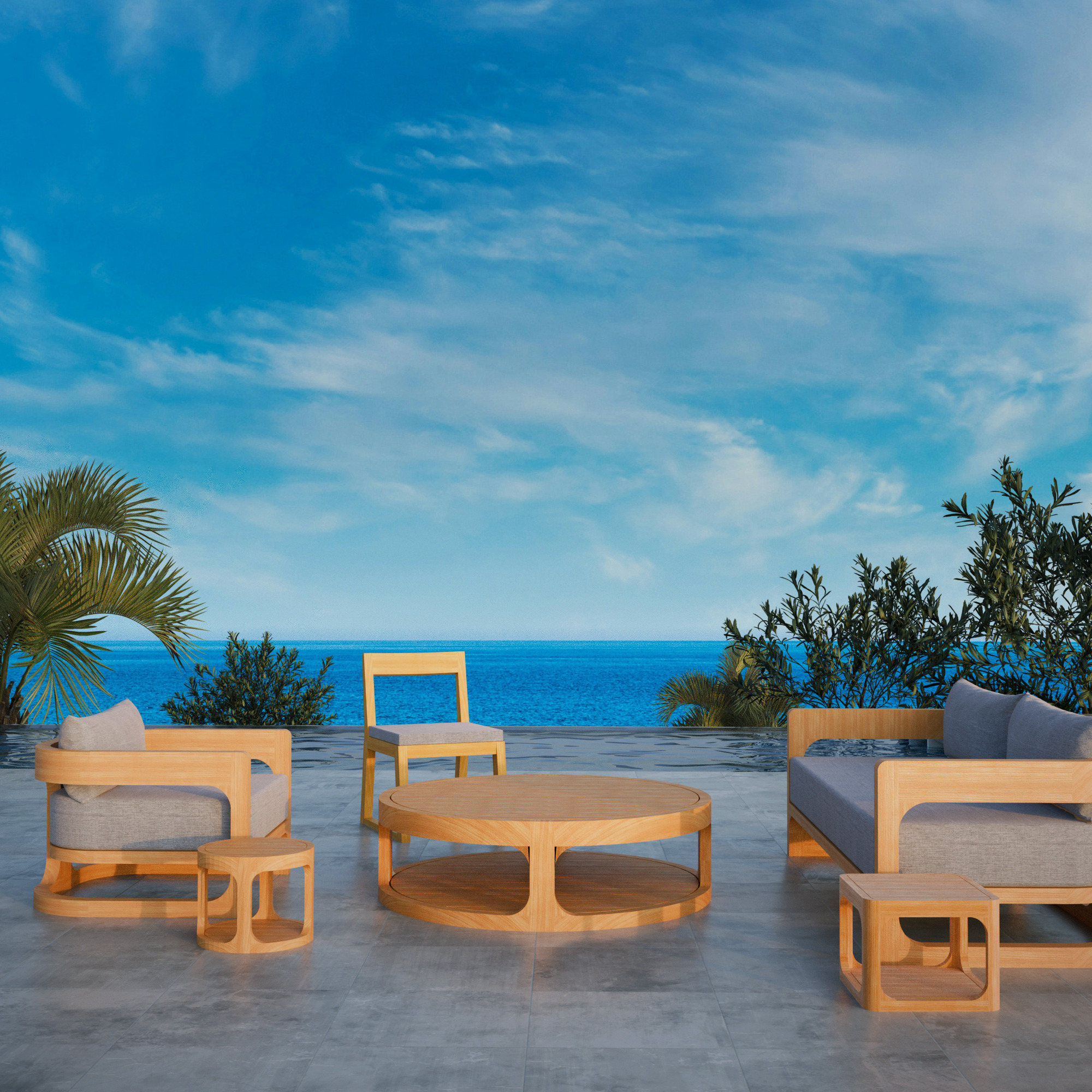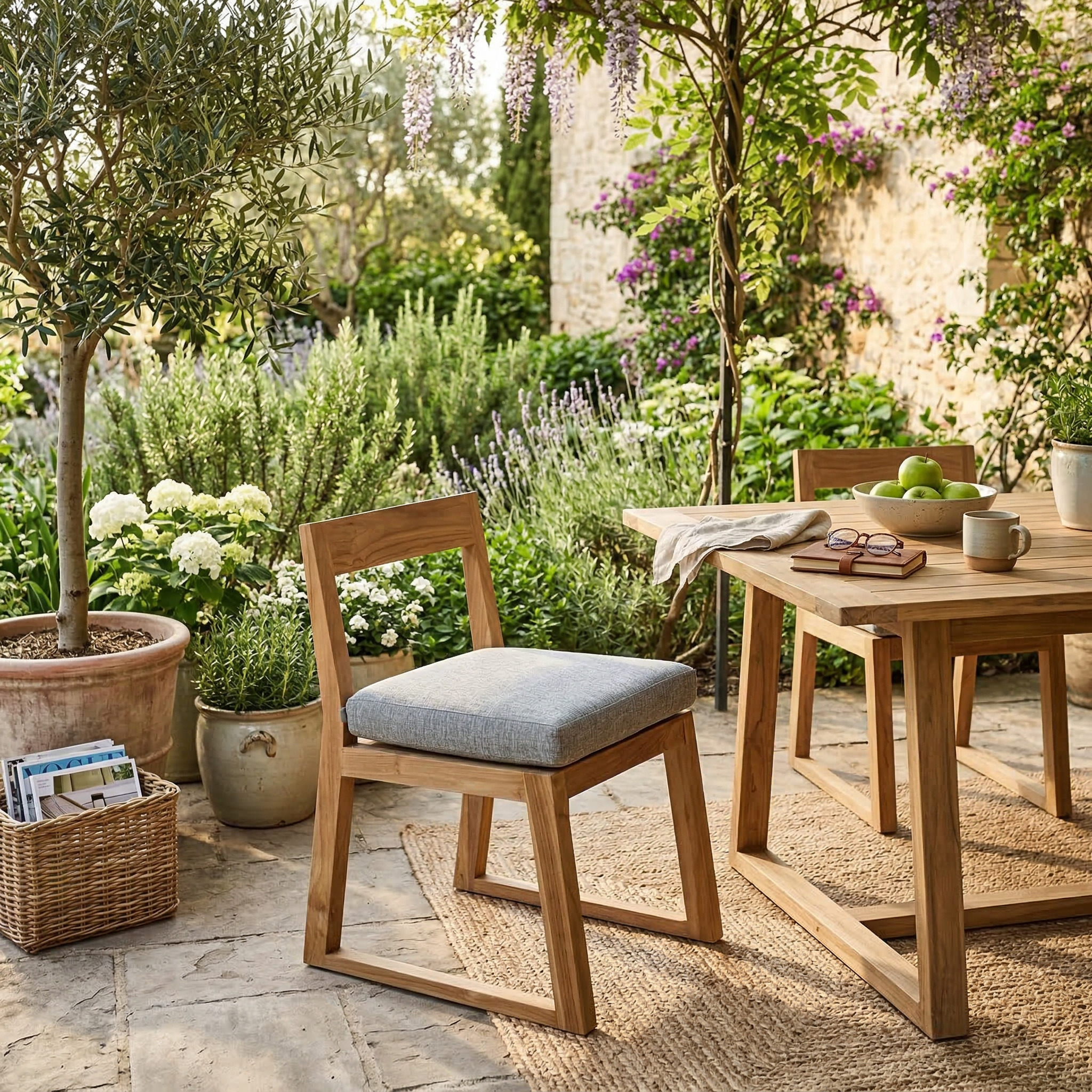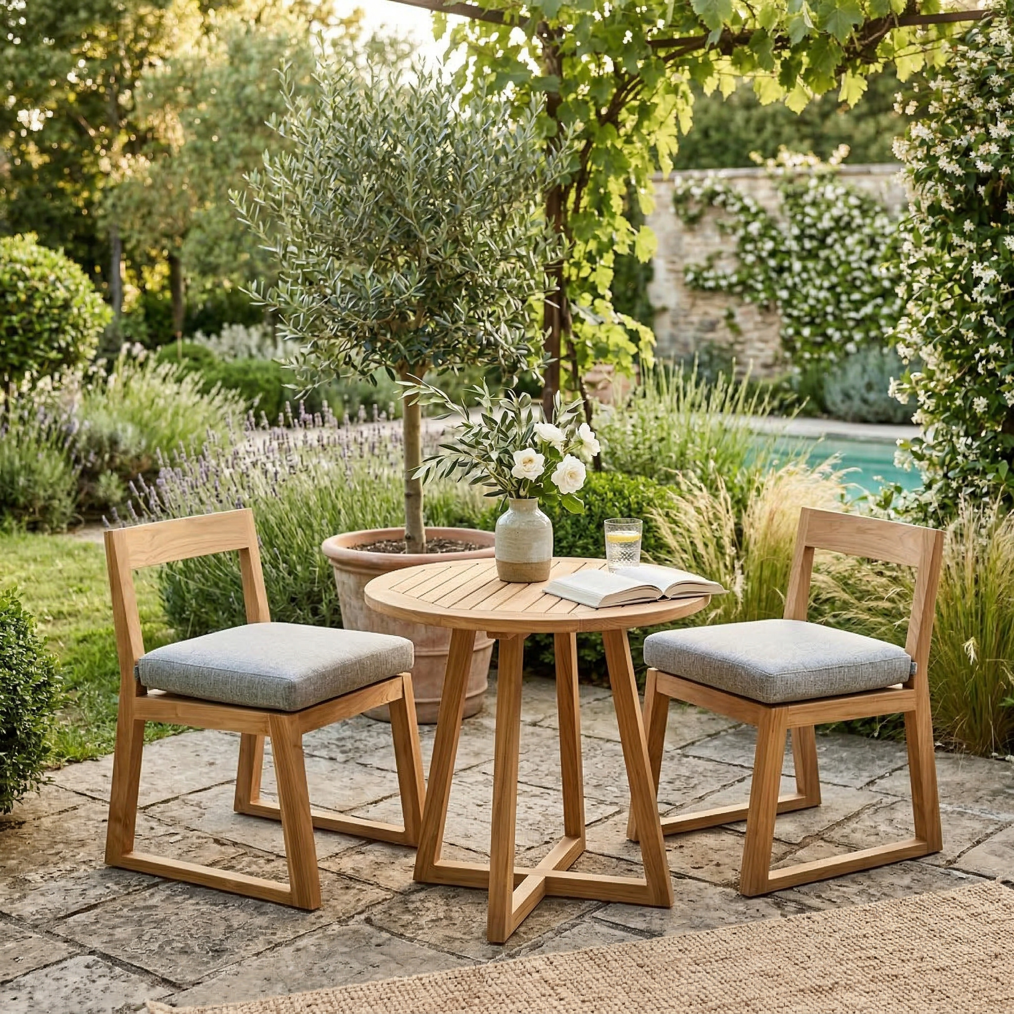 Son teck massif au charme authentique donne immédiatement un aspect chic et chaleureux à votre extérieur, comme une maison de vacances où l’on aime passer du temps.