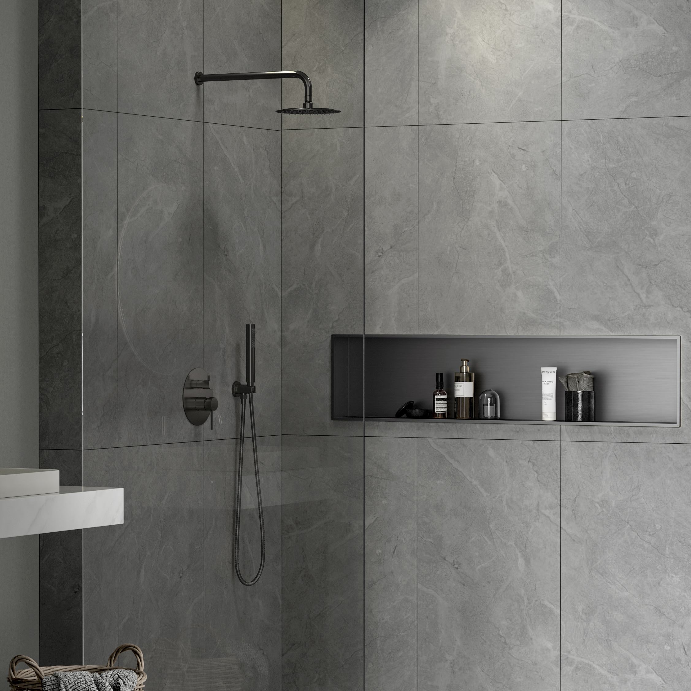 Swiss Aqua Technologies Aurum Niche de Douche à encastrer, Acier Inoxydable 304, 120x28x10cm, Gun Métal brossé PVD (SATAURN12128BGM)