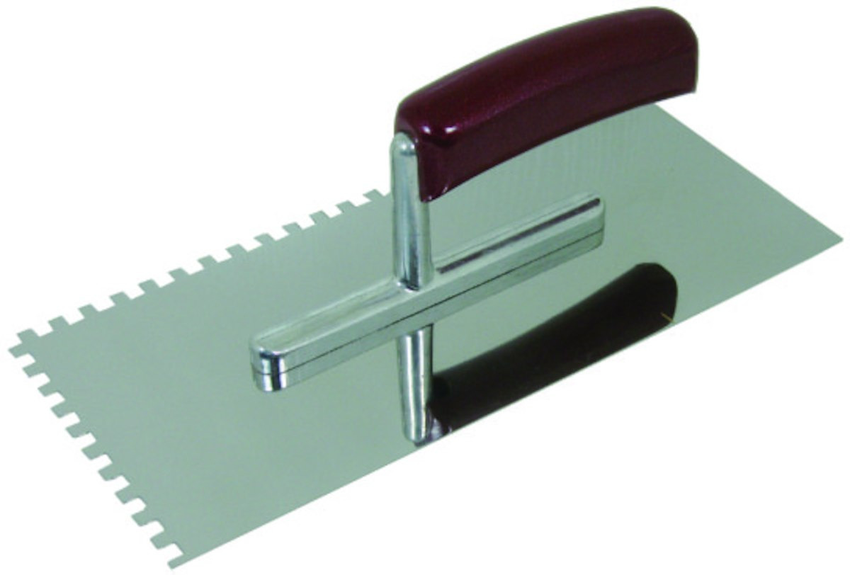 Truelle à dents utilisée pour l'application de colles sur les carreaux. Dent 10 mm.