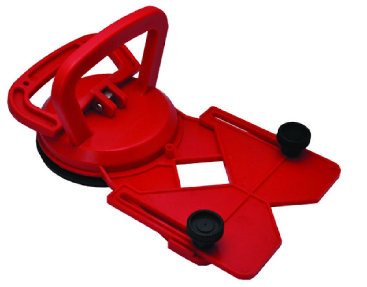 Le système de guidage est fixé à l'inclinaison/au carreau à l'aide d'une ventouse. Les vis de blocage sont utilisées pour définir le trou de forage (réglable de 6 à 83 mm), ce qui permet d'éviter que le foret ne glisse hors de la position de forage.