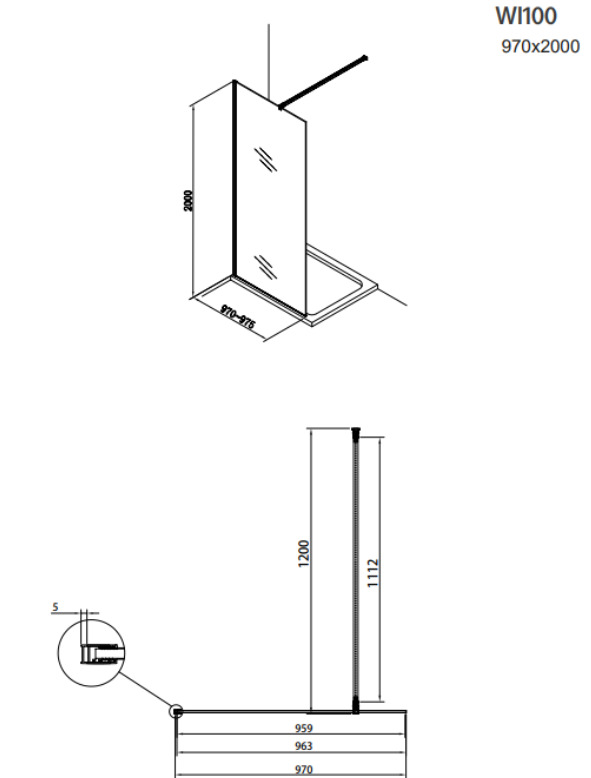 - Compatible avec toutes les parois de douche à l'italienne de 8mm d'épaisseurs