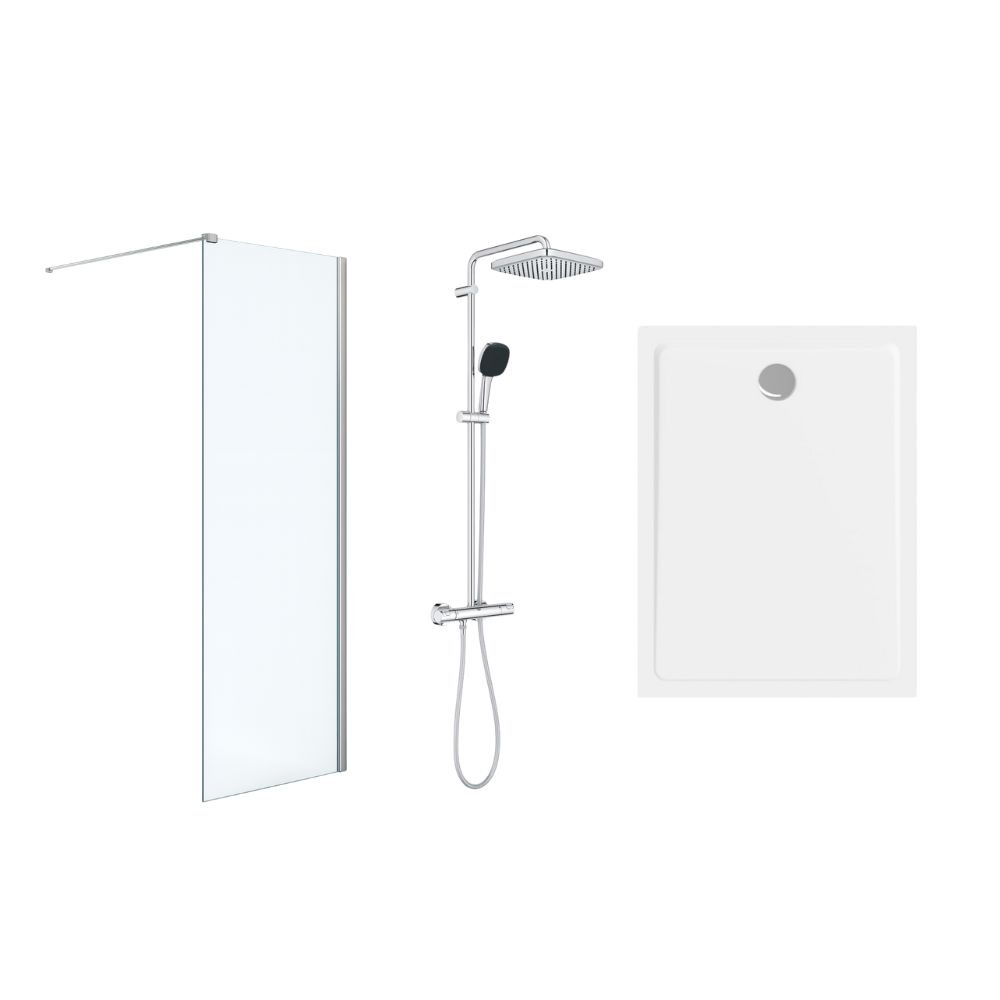 Pack Douche Complet – Paroi Walk-In 100x200 Chrome + Colonne Grohe Vitalio 2 Jets + Receveur Marbre Coulé Blanc 120x80