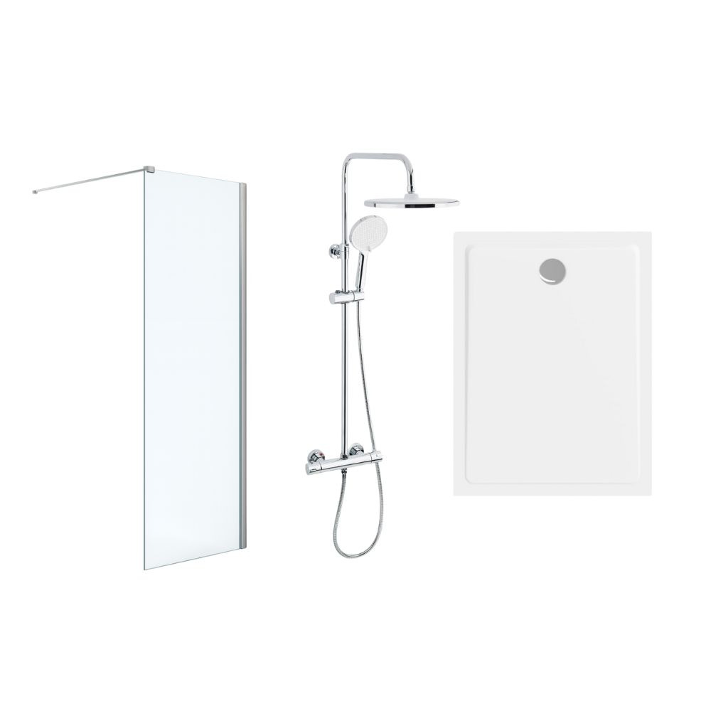 Pack Douche Complet – Paroi Walk-In 100x200 Chrome + Colonne SAT 3 Jets + Receveur Marbre Coulé Blanc 120x90 (SAT100C7PR129W)