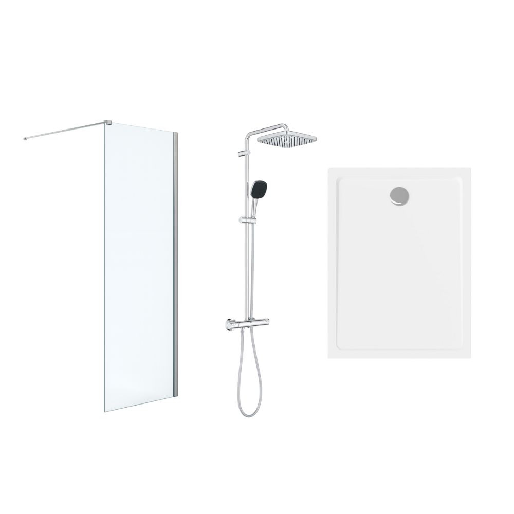 Caractéristiques du pack Douche Complet – Paroi Walk-In 100x200 Chrome + Colonne Grohe Vitalio 2 Jets + Receveur Marbre Coulé Blanc 120x90 (SAT100C8PR129W) :