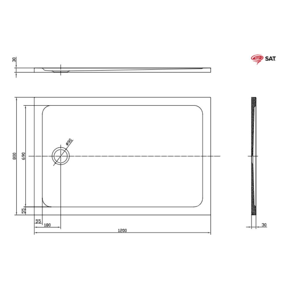 Project by Siko Receveur de douche rectangulaire 120x80 cm marbre coulé, blanc (SATSVPRO12080) :