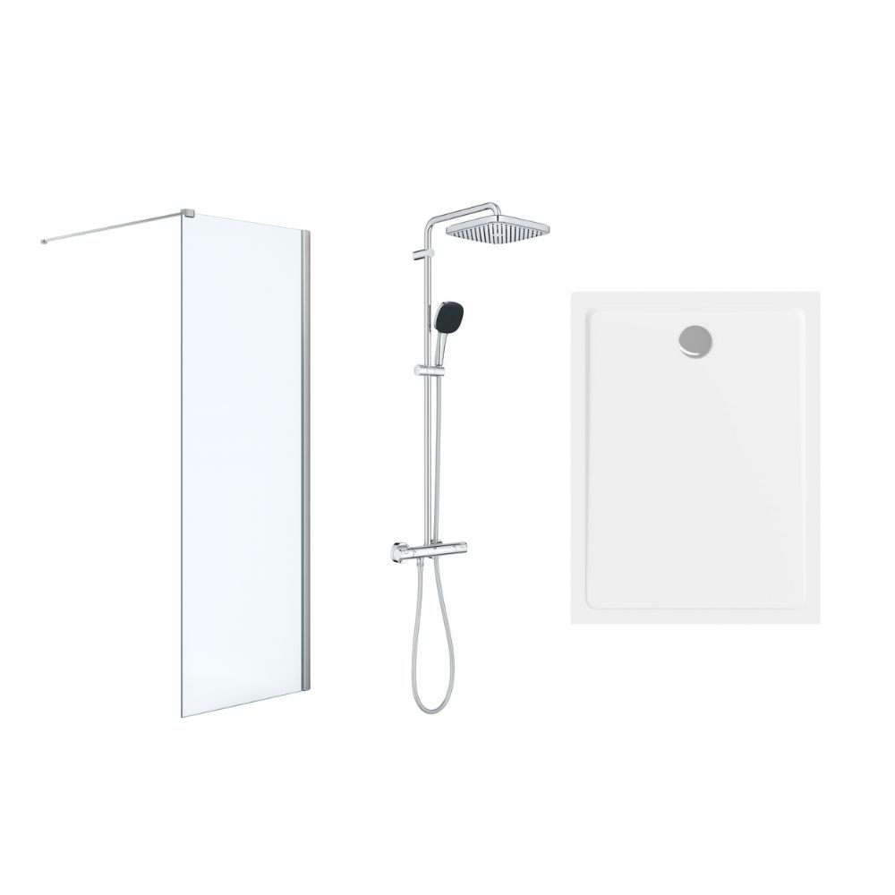 Pack Douche Complet – Paroi Walk-In 120x200 Chrome + Colonne Grohe Vitalio 2 Jets + Receveur Marbre Coulé Blanc 120x90