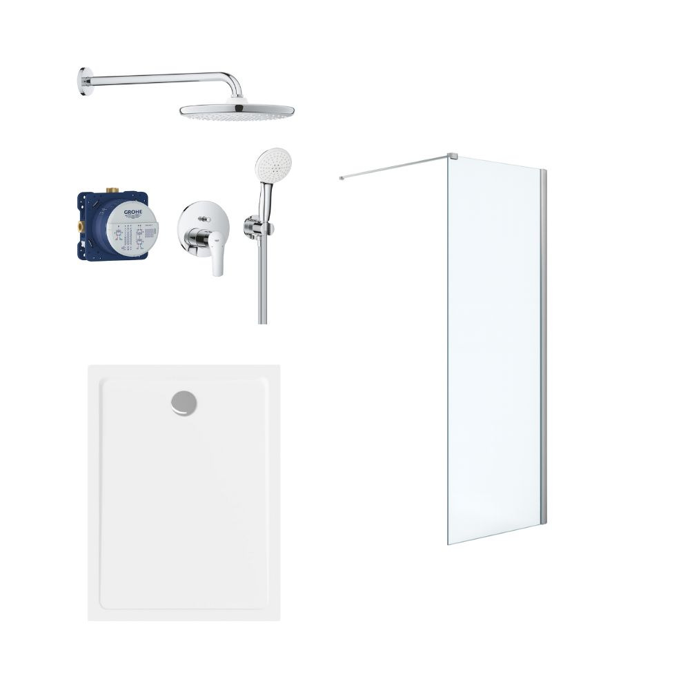 Pack Douche Complet – Paroi Walk-In 120x200 Chrome + Colonne Grohe Eurosmart 2 Jets + Receveur Marbre Coulé Blanc 120x90
