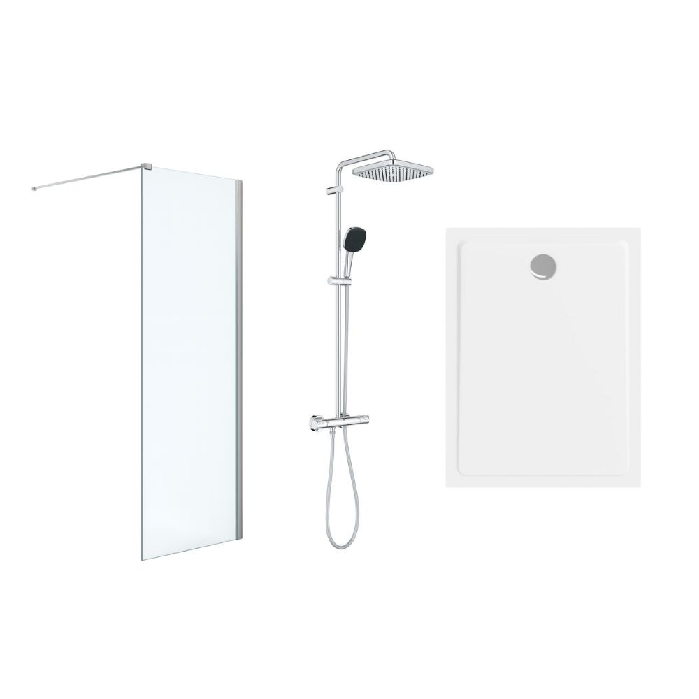 Pack Douche Complet – Paroi Walk-In 140x200 Chrome + Colonne Grohe Vitalio 2 Jets + Receveur Marbre Coulé Blanc 140x90