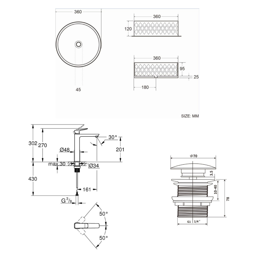QUICKFIX DICE mitigeur lavabo, taille XL + vasque à poser Swiss Aqua Technologies 36x36x12 cm (BA3-G1018920000-02)