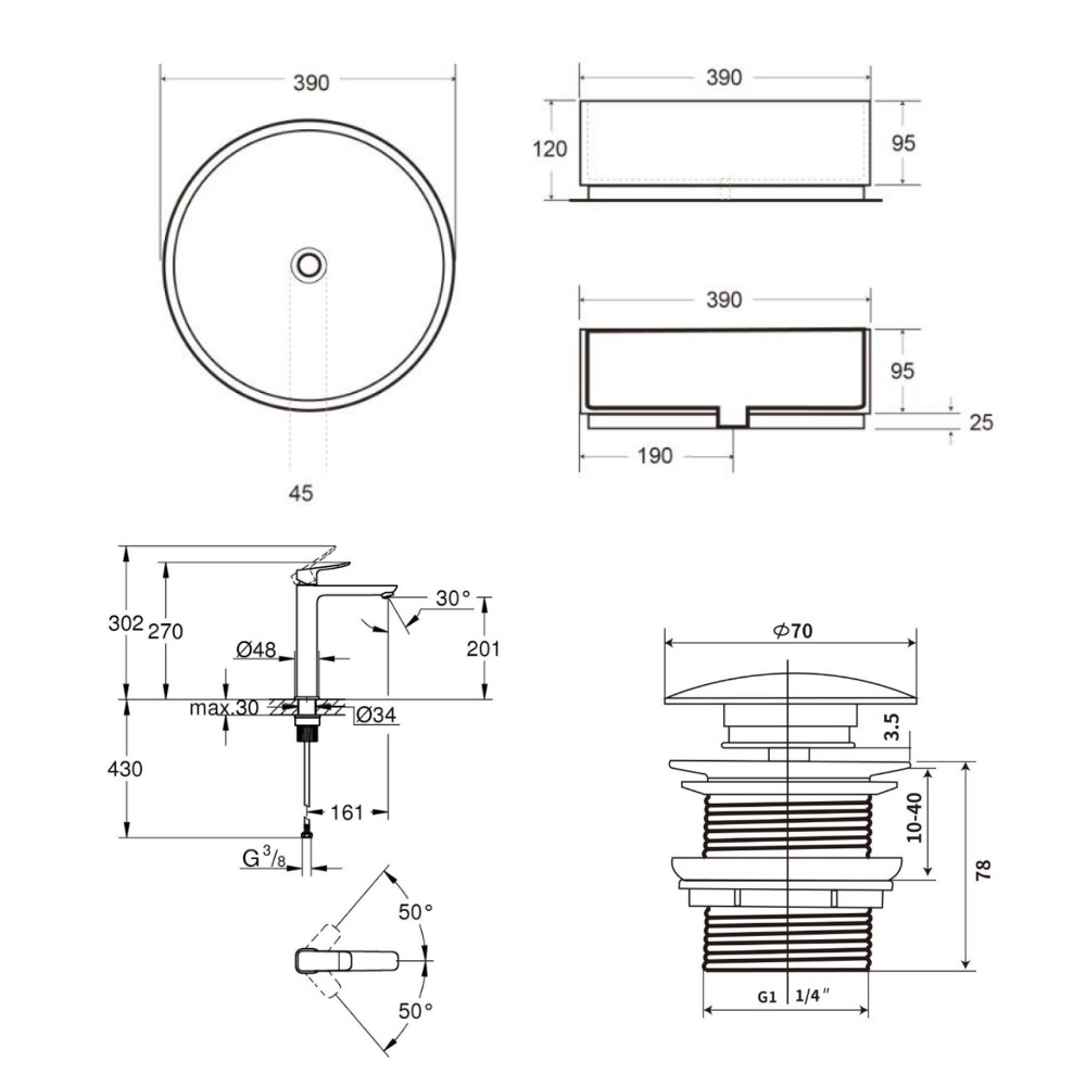 - Type de produit : vasque à poser sans trop-plein
