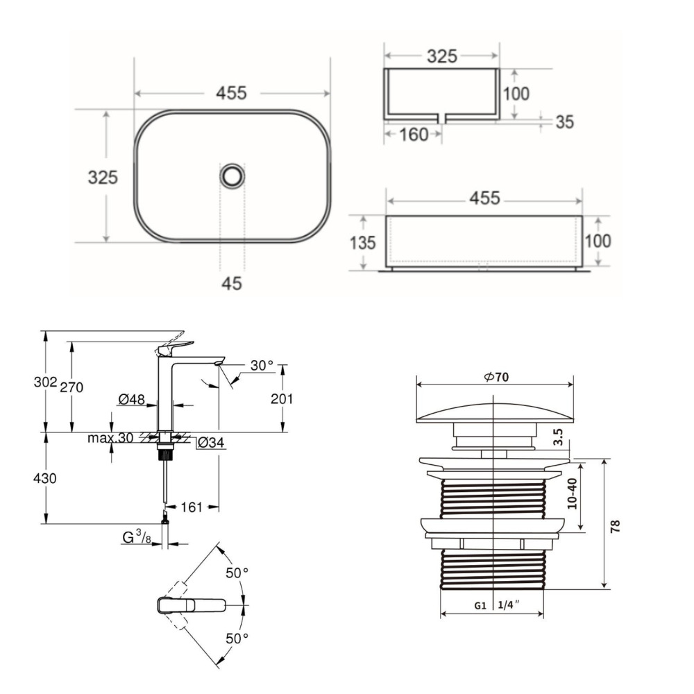 QUICKFIX DICE mitigeur lavabo, taille XL + Vasque à poser Swiss Aqua Technologies 45,5x32,5x13,5 cm (BA3-G1018920000-08)
