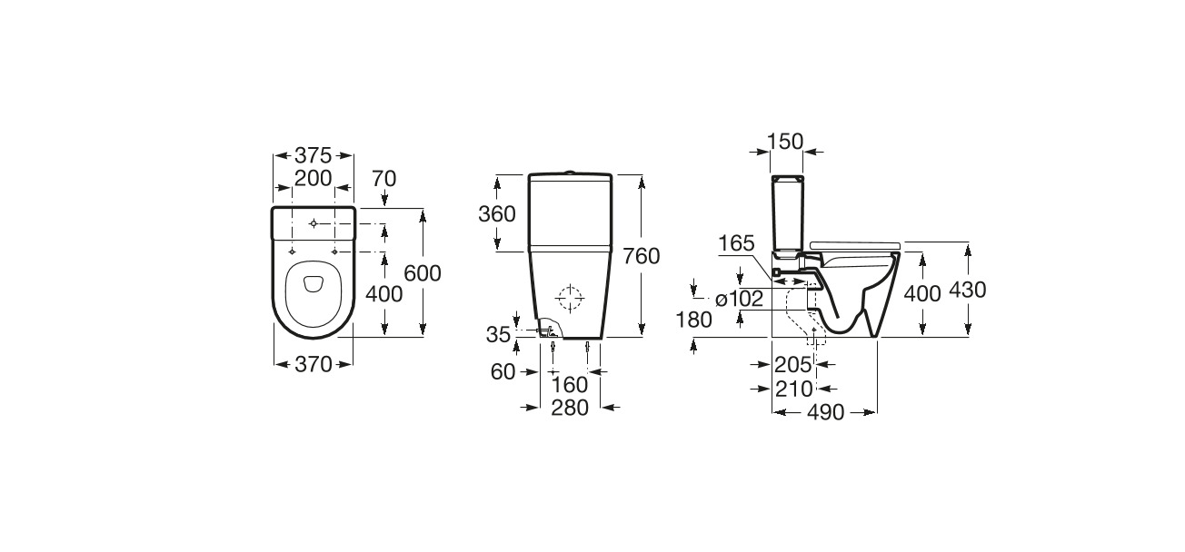 Wc compact à poser, Cuvette sans bride évacuation universelle, Onyx, Roca Inspira (A342529640) :