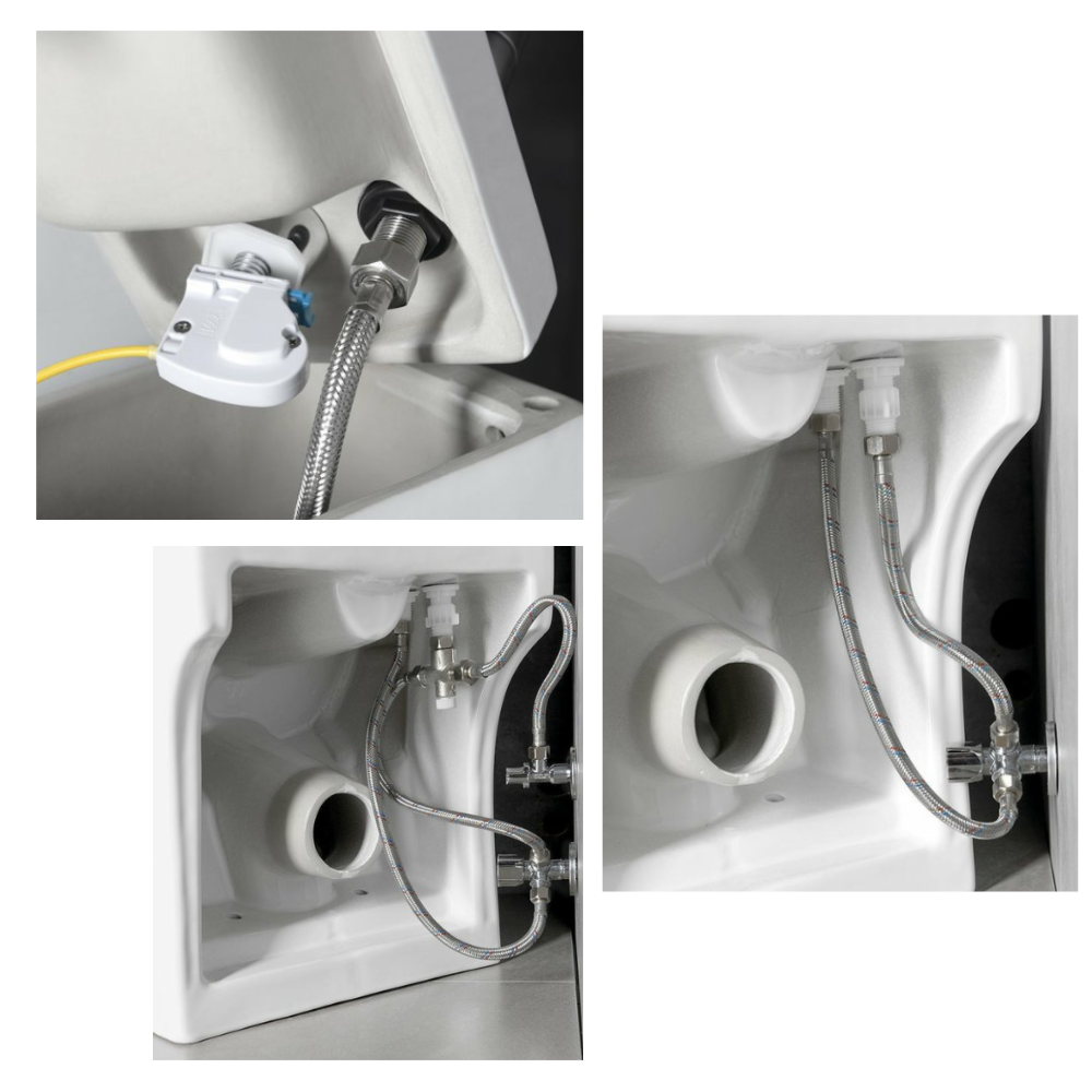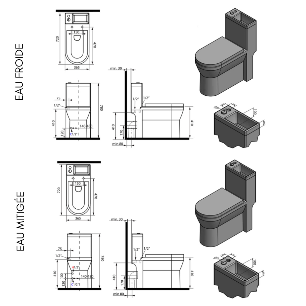 Le WC à poser Sapho Hygie PB104 est un équipement sanitaire conçu par la marque Sapho et qui présente de nombreux avantages. Pour commencer, ce WC à poser Sapho PB104 est une cuvette avec bride qui contient idéalement l’écoulement de l’eau. En plus de cela, ce WC à poser avec abattant softclose Sapho PB104 propose un double bouton de chasse chromé pour un vidage de 3 ou 6 litres, selon vos besoins. Néanmoins, la particularité du WC à poser Sapho Hygie PB104 reste son lavabo intégré avec trou de robinetterie sur la gauche. En effet, le WC à poser gain de place avec lave-mains intégré Sapho Hygie PB104 propose donc une deuxième fonction grâce à laquelle vous pouvez directement vous laver les mains après vos besoins. Aussi, profitez de l’abattant avec frein de chute de ce WC à poser Sapho PB104 pour éviter tout claquement contre la cuvette. Enfin, ce WC à poser Sapho Hygie PB104 est un équipement économique qui utilise l’eau pour le rinçage des mains pour remplir le réservoir de chasse.
