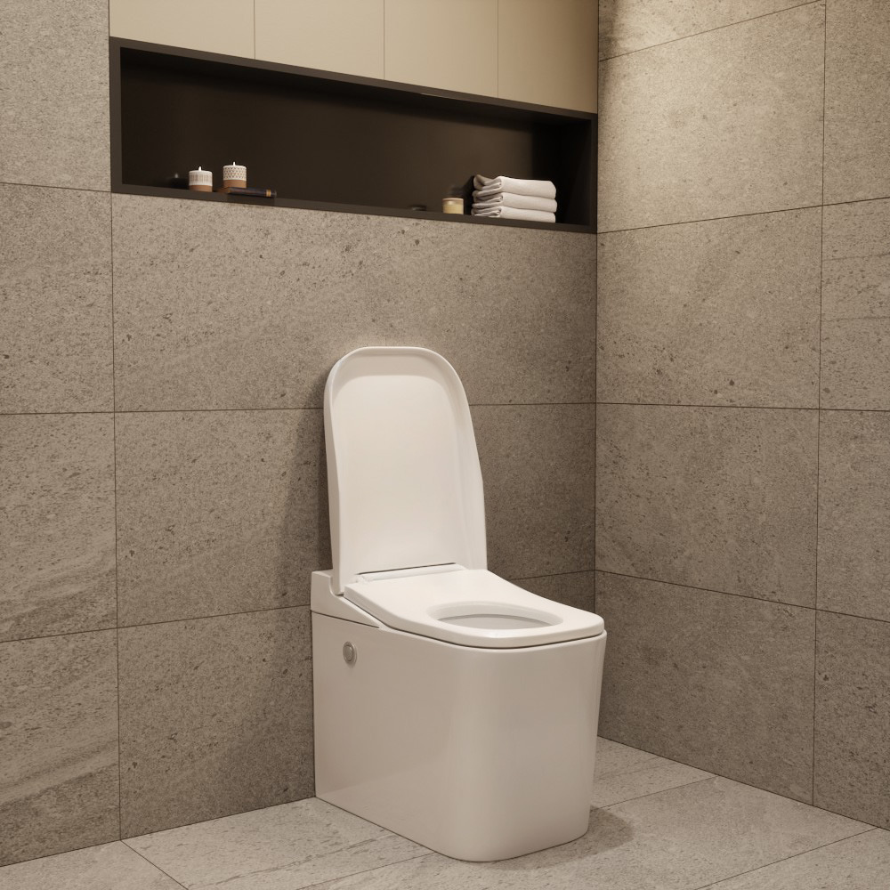 Deux buses intégrées garantissent une propreté renforcée : l’une lave la surface de la cuvette, l’autre évacue les impuretés directement dans le siphon, réduisant ainsi le besoin de brosser. Le siège soft-close évite les claquements, et le système est conçu pour fonctionner de manière silencieuse, aussi bien lors du remplissage que de la chasse.