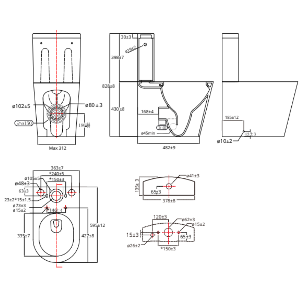 Il est doté d'une cuvette sans bride (rimless) avec vidage universel, d'un réservoir avec mécanisme de chasse et d'un abattant à fermeture douce (softclose) et déclipsable