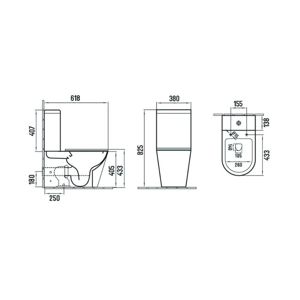 - Cuvette, réservoir de chasse d'eau et abattant fournis