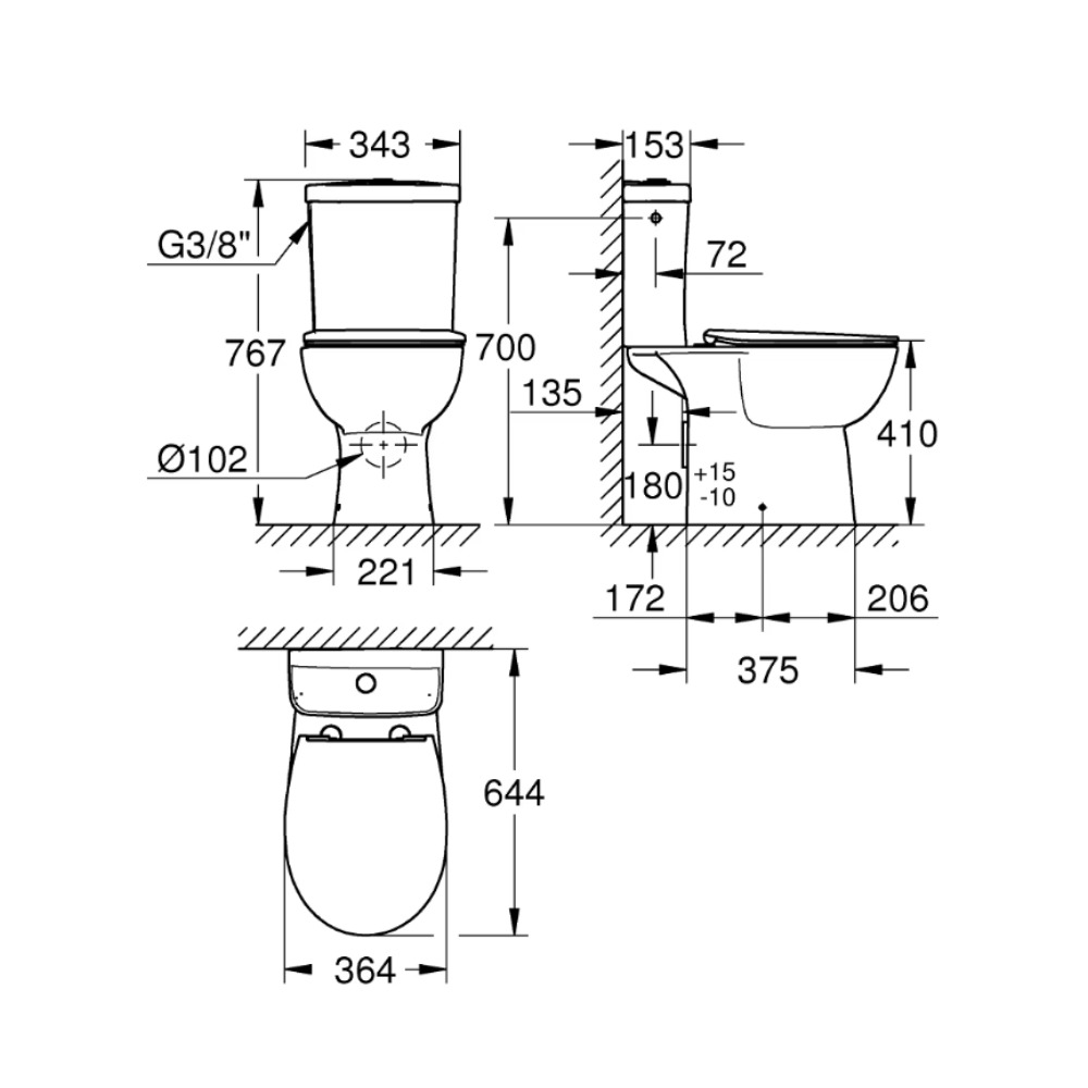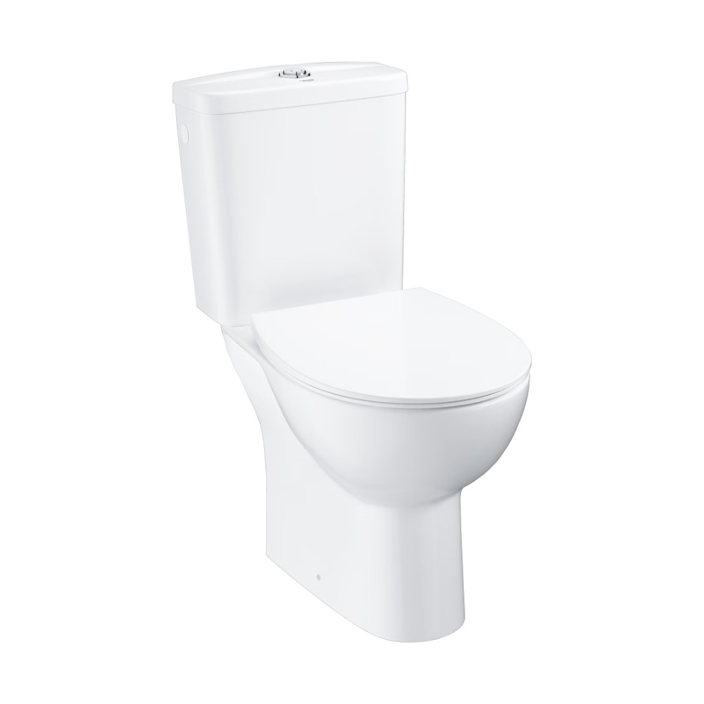 Caractéristiques de l'ensemble WC à poser complet sans bride avec abattant ultra-fin SoftClose, Grohe Bau Ceramic, blanc (39904000) :