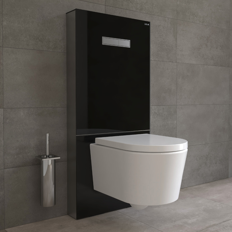 Vitra Vitrus Bâti-support en verre trempé/aluminium brossé pour WC, 1140x518mm, Noir (770-5761-01) :