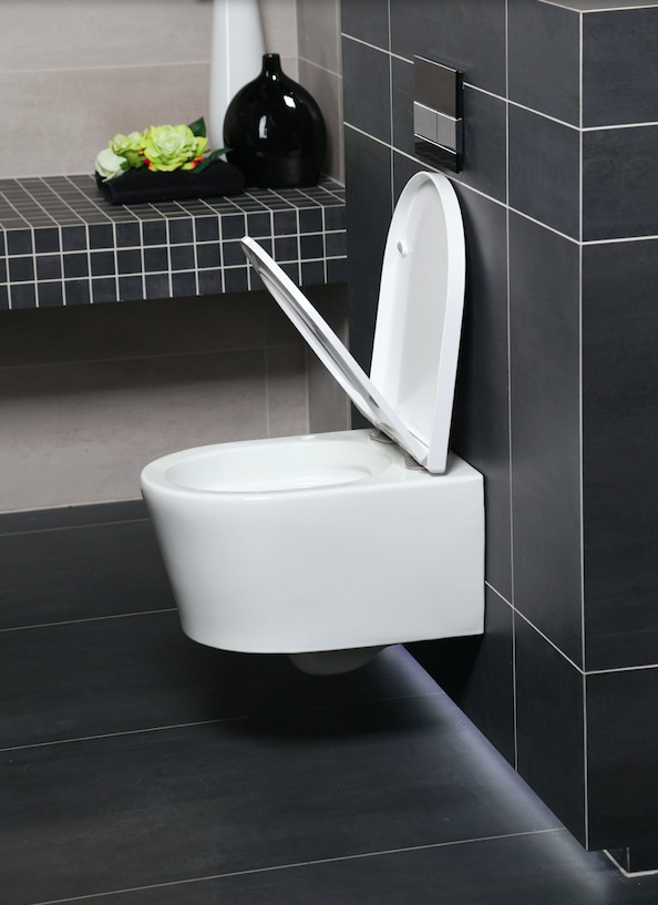 - Swiss Aqua Technologie Cuvette suspendue sans bride et fixations invisibles + abattant frein de chute (SATBRE010RREXP)