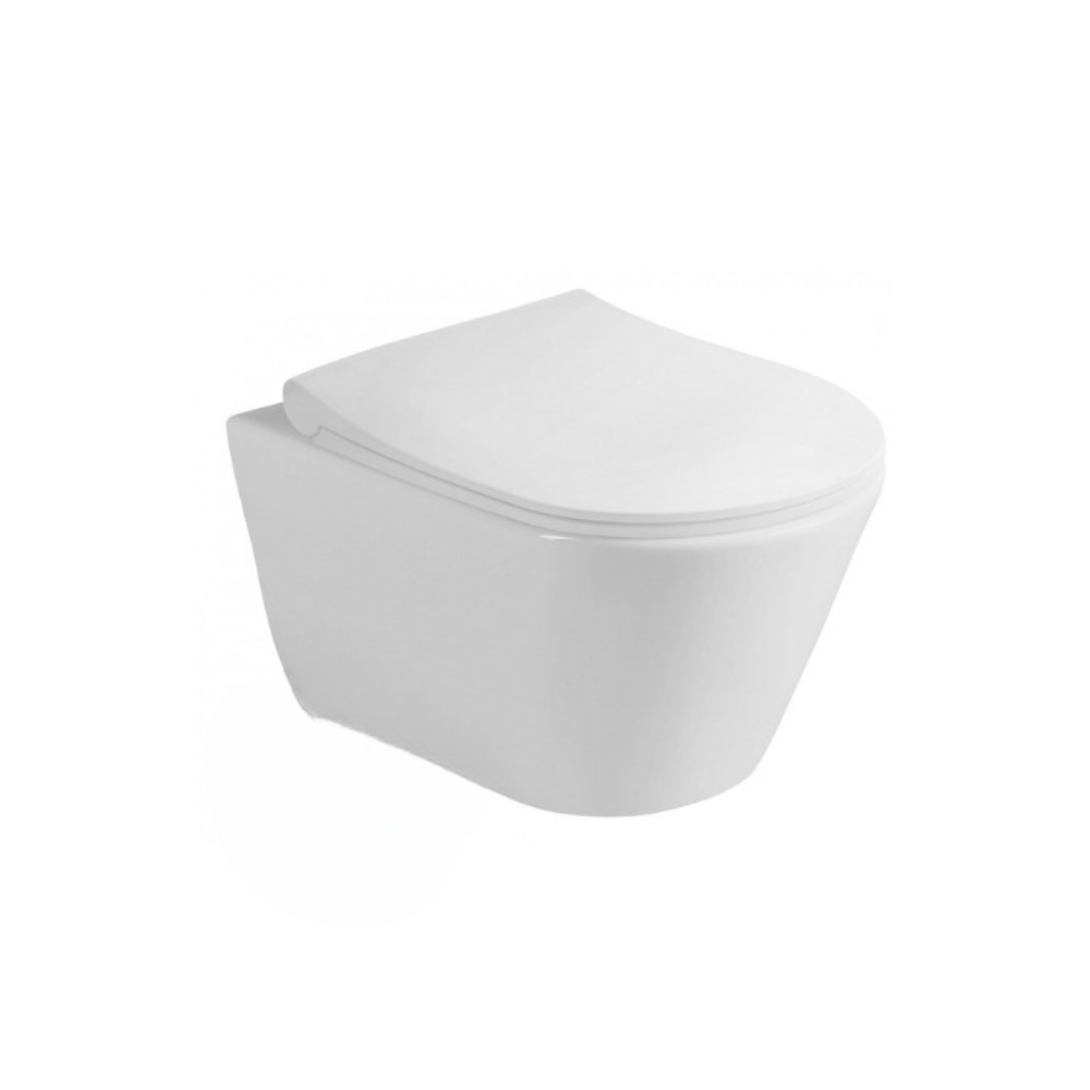 - Lucco Avva Cuvette suspendue sans bride avec abattant frein de chute, Blanc (Avvarimless)