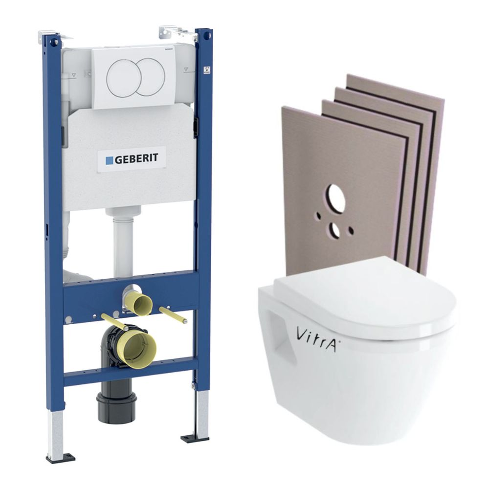 Pack WC Bati-support Geberit Duofix + WC suspendu Vitra Integra + Abattant en Duroplast + Plaque blanche + Set d'habillage
