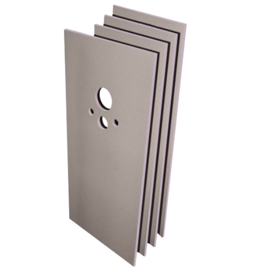- Dimensions des panneaux : 1 panneau 1300 x 600 x 20 mm (avec découpes pour passage de canalisations) et 3 panneaux 1300 x 450 x 20 mm