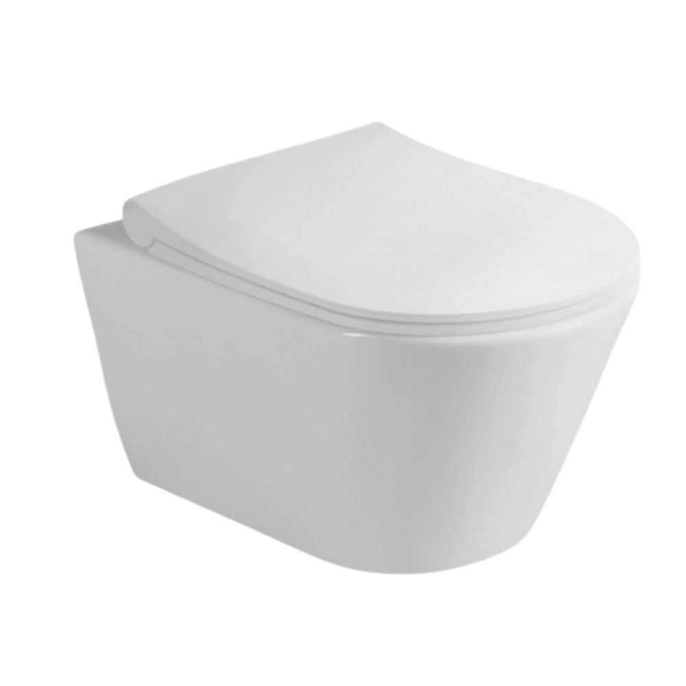 - Lucco Avva Cuvette suspendue sans bride avec abattant frein de chute, Blanc (Avvarimless)