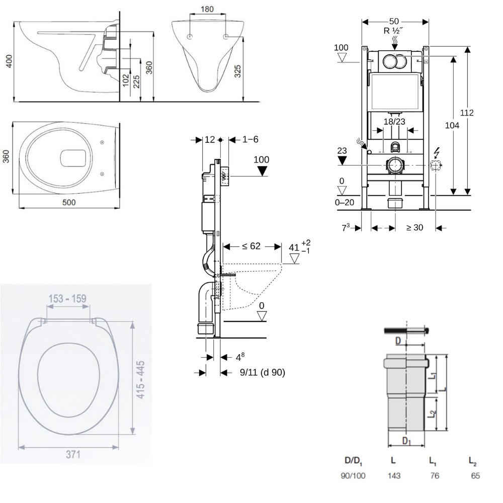 Caractéristiques du Pack WC Bâti-support Duofix + WC suspendu Jika Neo + Abattant + Plaque blanche + Set d'habillage (S-LineProGeb3-sabo) :