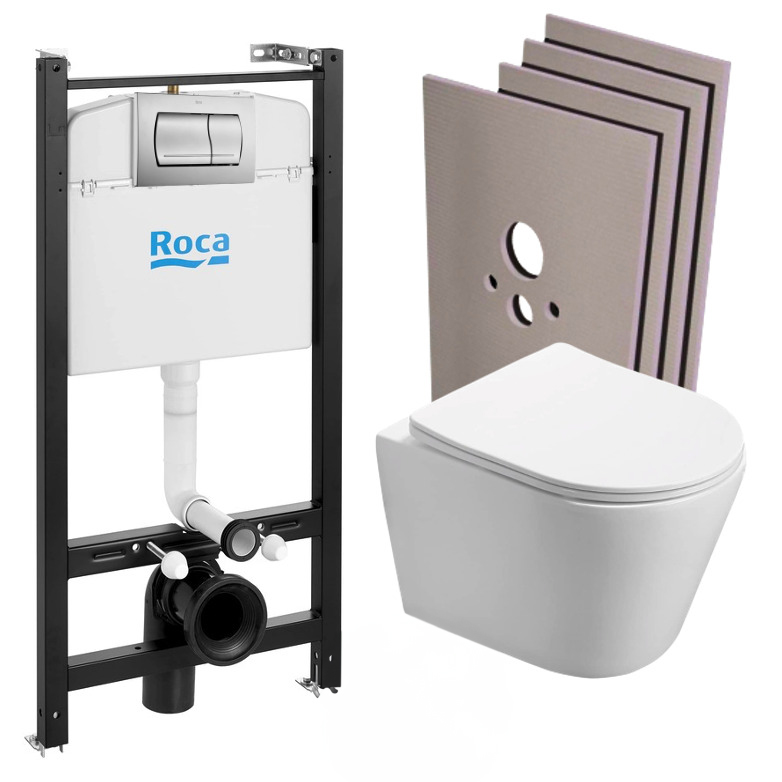 Pack Bâti-support Roca Active + WC suspendu Infinitio sans bride + plaque chrome mat + Set habillage