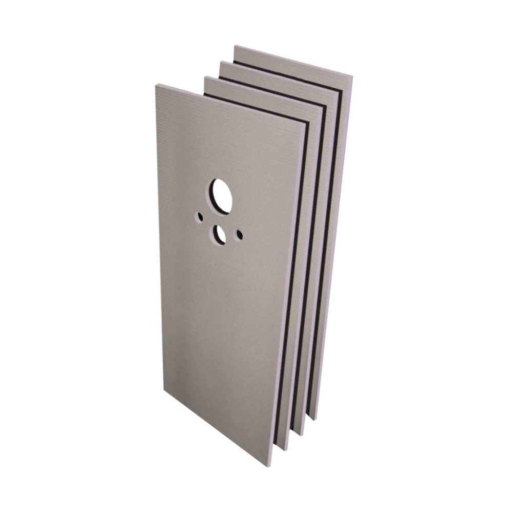 - Dimensions des panneaux : 1 panneau 1300 x 600 x 20 mm (avec découpes pour passage de canalisations) et 3 panneaux 1300 x 450 x 20 mm