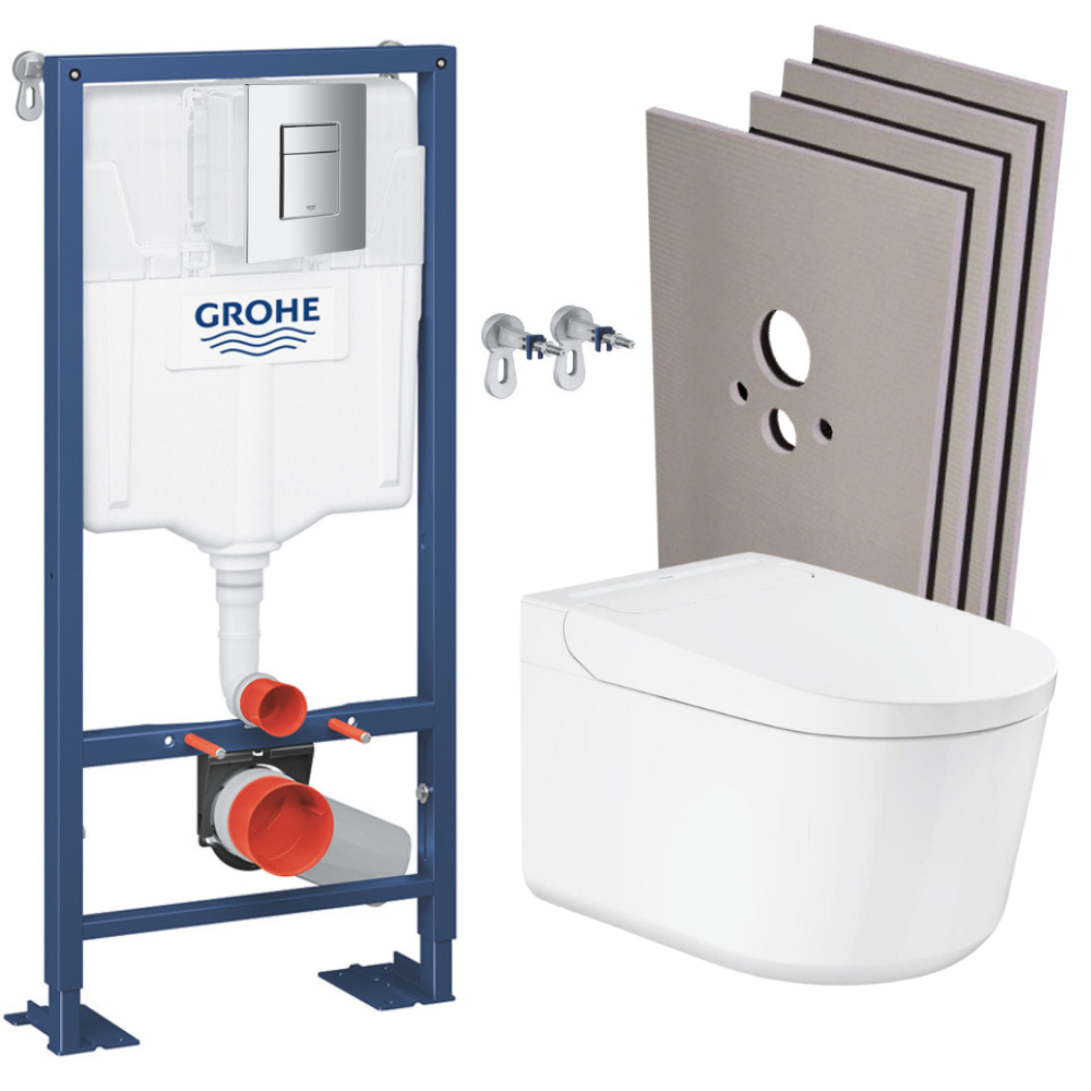 Grohe Pack WC Bâti-support RAPID SL + WC lavant suspendu Sensia Alpine + Plaque chrome + Set habillage (RSLSENSIA1SB)