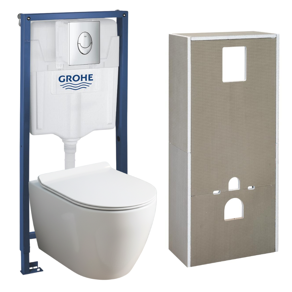 Grohe Solido + pack WC 4 en 1 + WC sans bride Ceramia PixL avec abattant SoftClose + plaque (GRCEPXWT05-FR)