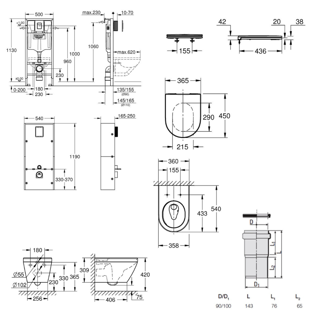 - Grohe Solido + set pour WC 4 en 1, hauteur 1,13 M (G36528000)