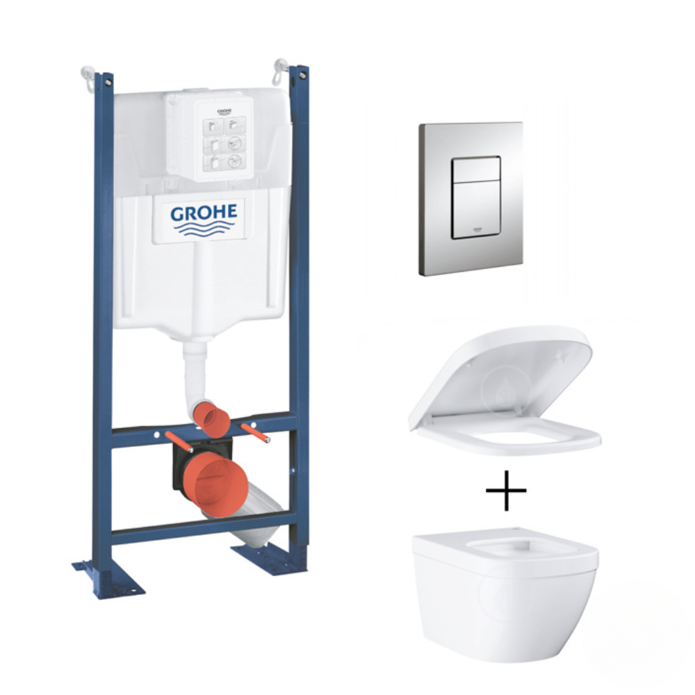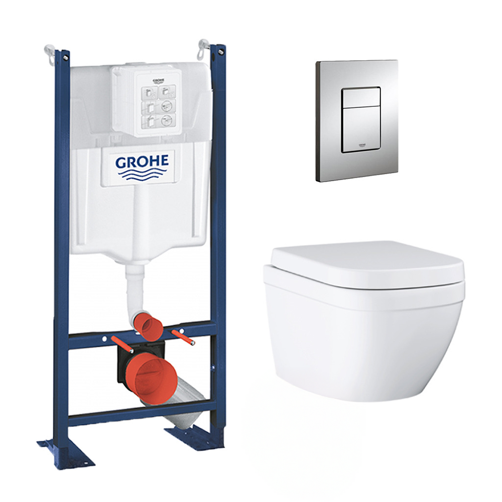 Grohe Pack WC Euro Ceramic sans bride Triple Vortex blanc alpin + Rapid SL autoportant NF + plaque chrome (ProjectEuroCeramic-1)