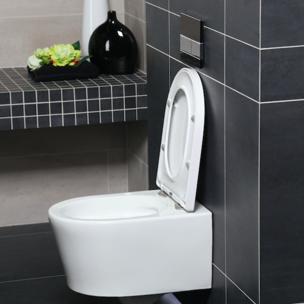 - Cuvette suspendue sans bride et fixations invisibles + abattant frein de chute (SATBRE010RREXP)