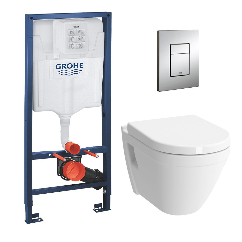 Pack WC Bâti + cuvette compacte + plaque de commande chrome (GROHE-S50COMPACT)
