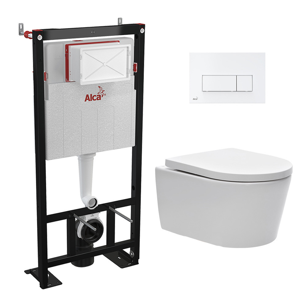 Alca Set bati support autoportant + WC suspendu sans bride, fixations invisibles + plaque double touche blanche (AlcaSATrimless-4)