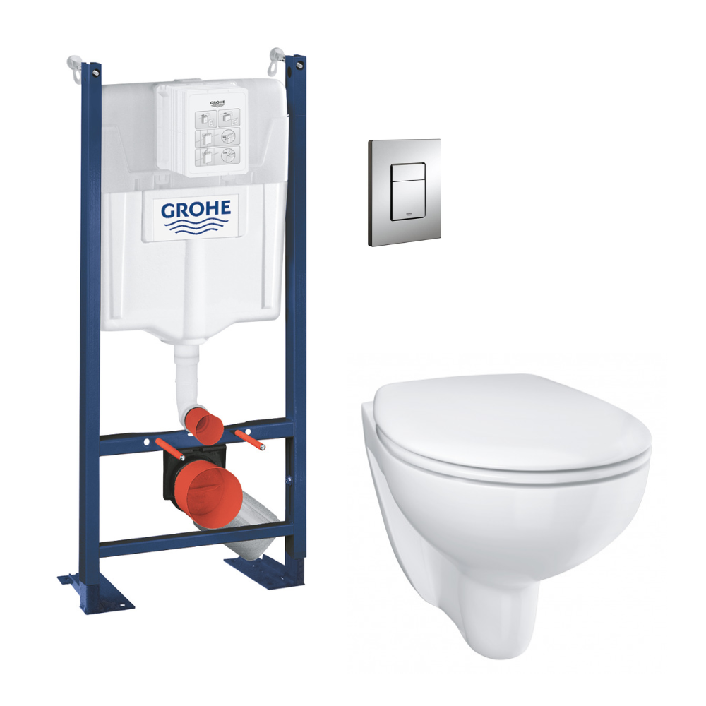 Grohe Pack Bâti autoportant RapidSL + Cuvette sans bride BauClassic + Abattant déclipsable + Plaque Skate Chrome(ProjectBauClassic-1)