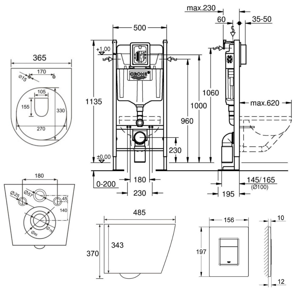 - Grohe RAPID SL Project bâti support autoportant pour WC, 1.13 M (39145000)