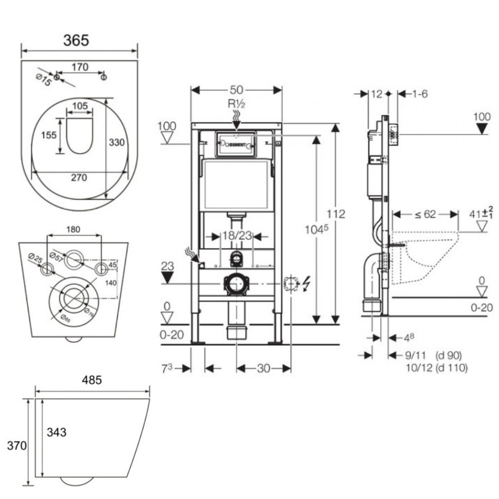 - fourreau isolant pour l’arrivée d’eau pour Geberit AquaClean