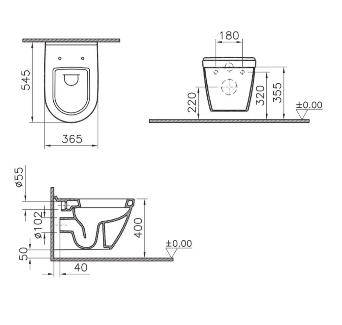 - Livré avec tiges et écrous pour fixation de la cuvette WC