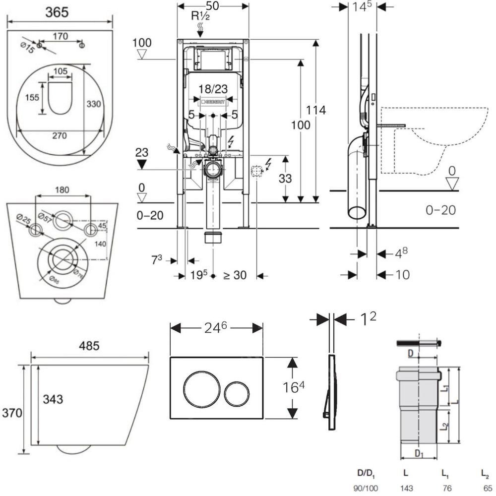 - Geberit Duofix Bâti-support extra-plat 114 cm, gain de place, avec réservoir à encastrer Sigma 8 cm (111.796.00.1)