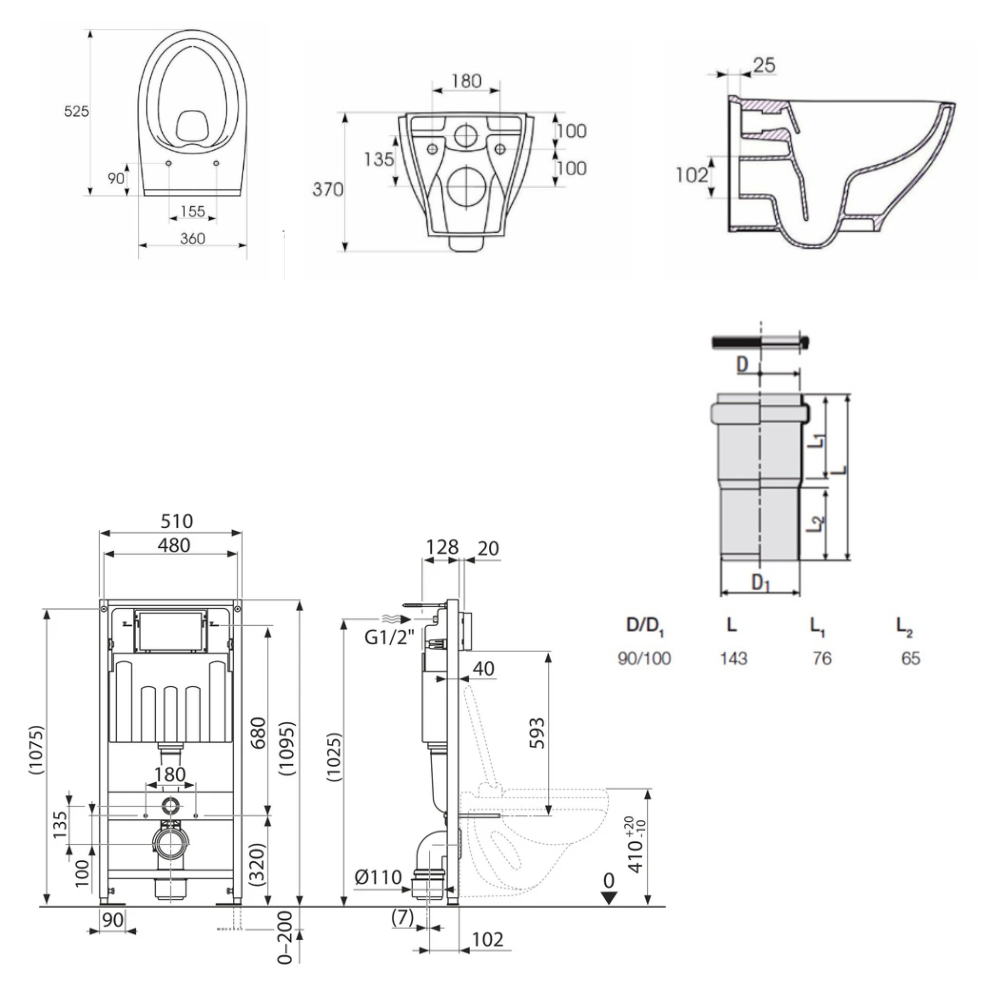 Caractéristiques du Pack WC bâti-support Villeroy & Boch + WC Cersanit Dormo sans bride + Abattant softclose + Plaque blanche (ViConnectDormo-2) :